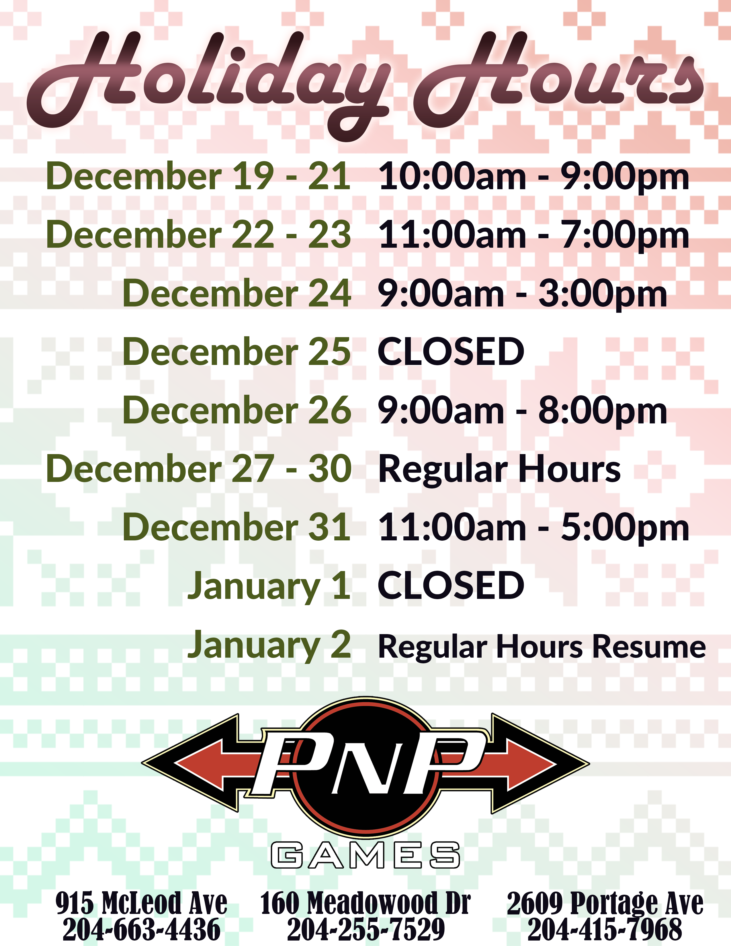 Holiday Store Hours 2025